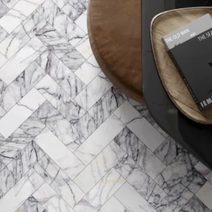 Carrara White Herringbone Polished Marble 100 x 305 x 10 mm – Per m²