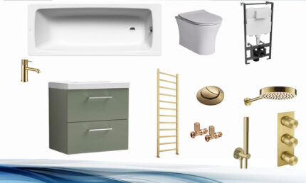 Bathroom Package £2500, Bathroom Packages, Brushed Brass Bathroom, Cost Effective Bathroom, Modern Bathroom Luxurious