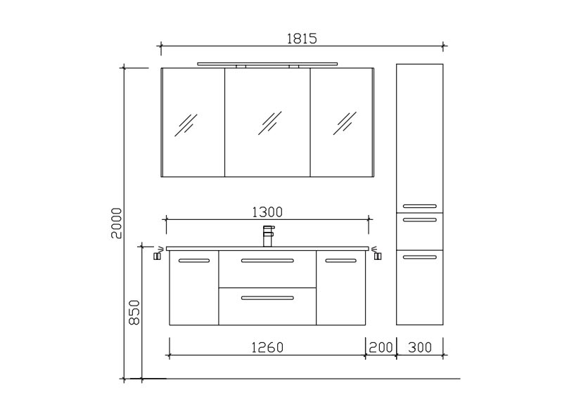 Contea Vanity Unit 1815mm, Side Unit 300mm & Mirror Cabinet – Metallic Steel Grey