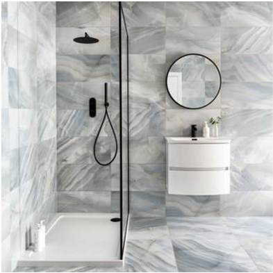 Waterproof, anti-slip, and beautifully designed tiles to create a luxurious bathroom.